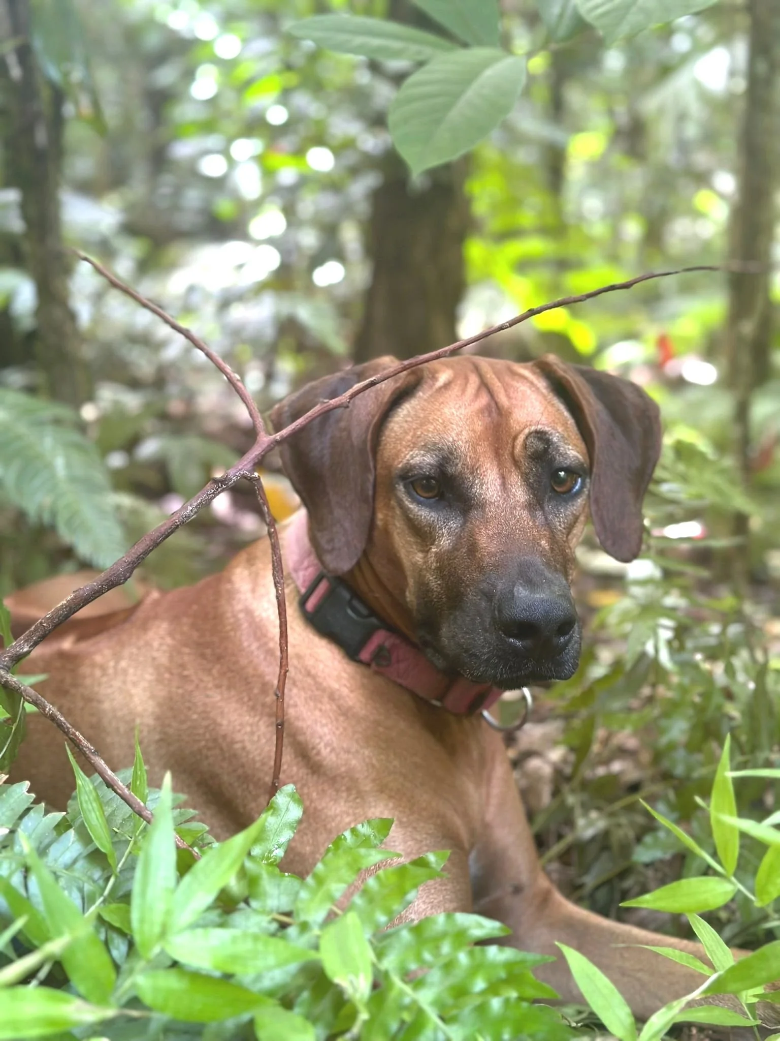 Meet Toni, the dog who helps me on my organic vanilla farm in the island Federation of St. Kitts and Nevis. Toni is a Rhodesian Ridgeback female who was born in Switzerland but came on a one way ticket to Nevis when she was 4 months old. Now 2 years old, and weighing 30 kilos, she's a loyal and protective dog who is always at my side, getting involved in all I do around the farm.